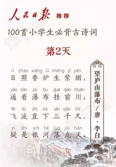 望庐山瀑布 小学生必背诗词no 2 基础教育 微信公众号文章阅读 Wemp