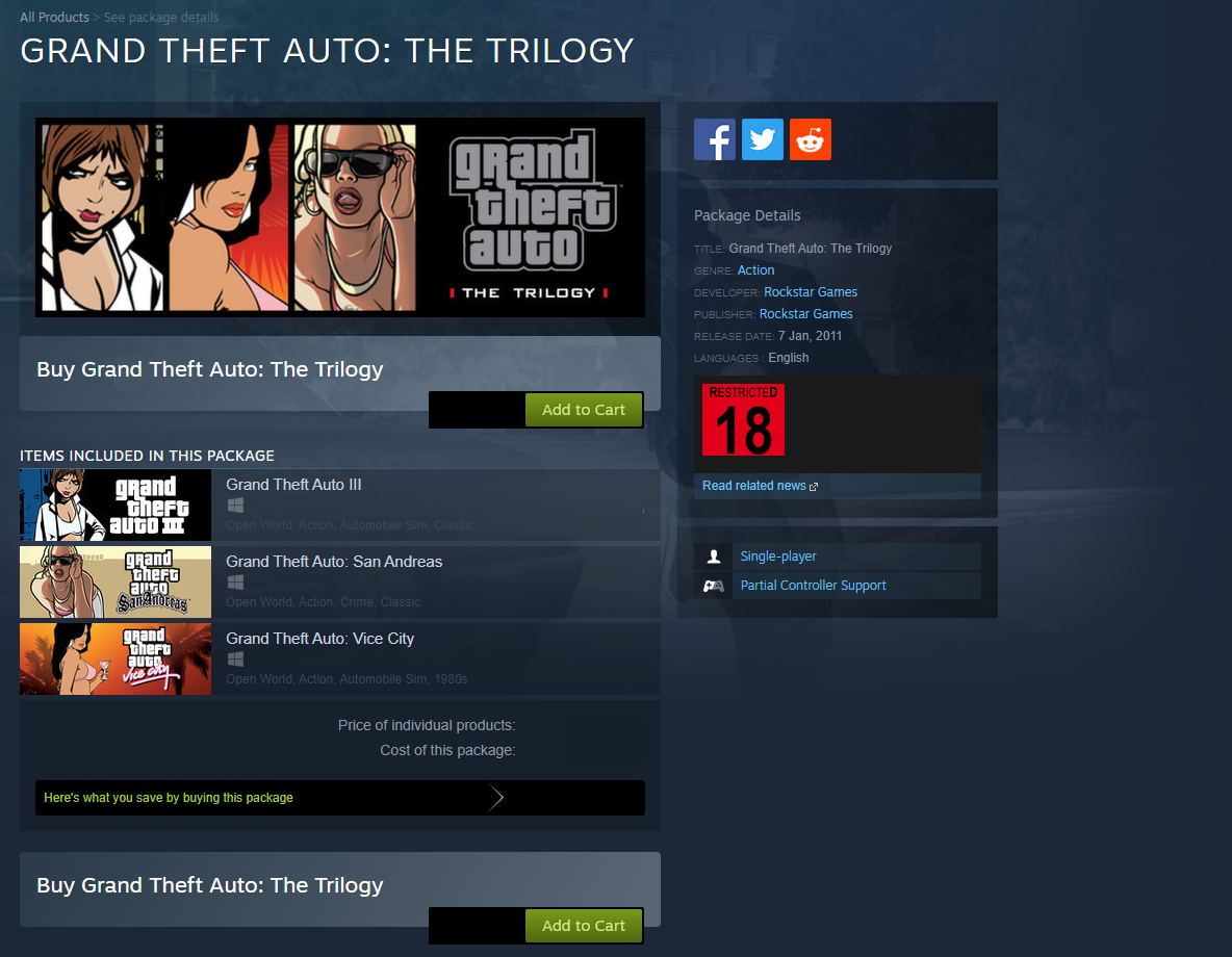 The Trilogy The Definitive Edition from the Rockstar Store via the web or Rockstar Games Launcher by January 5 2022 to receive 10 off a product priced at 15 or more exchange rates apply. One such notable leak that turned out to be true was the Grand Theft Auto Trilogy remasters. Steam is the largest digital games distribution platform by far.